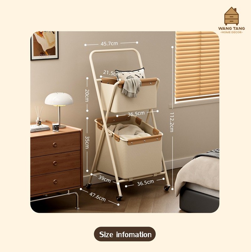 รายละเอียดสินค้า: ตะกร้าผ้าคัดแยก 2 ชั้นล้อเลื่อน รุ่น Ishida (ดีไซน์มินิมอล)