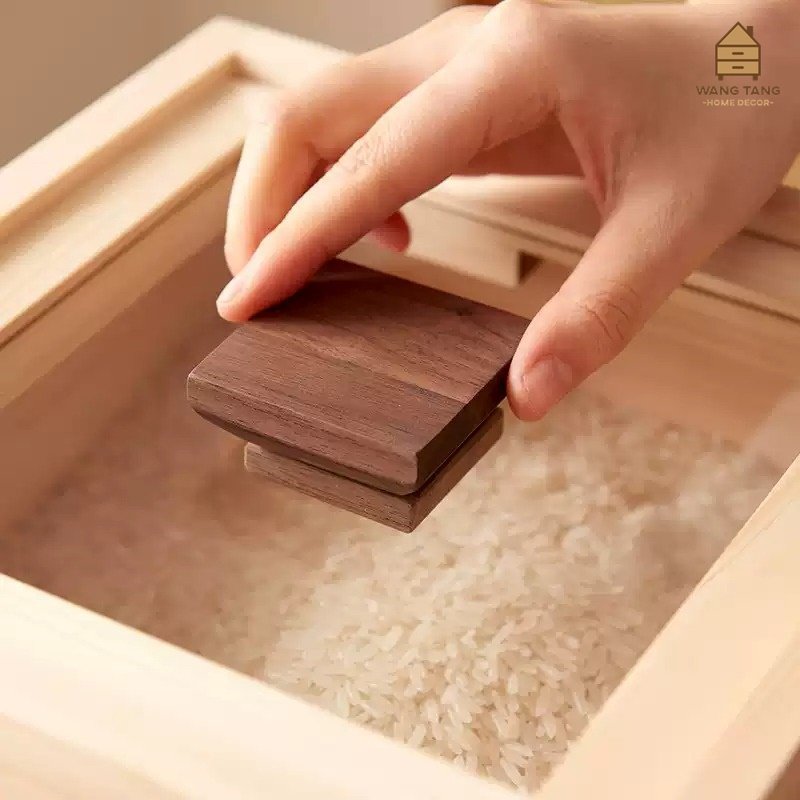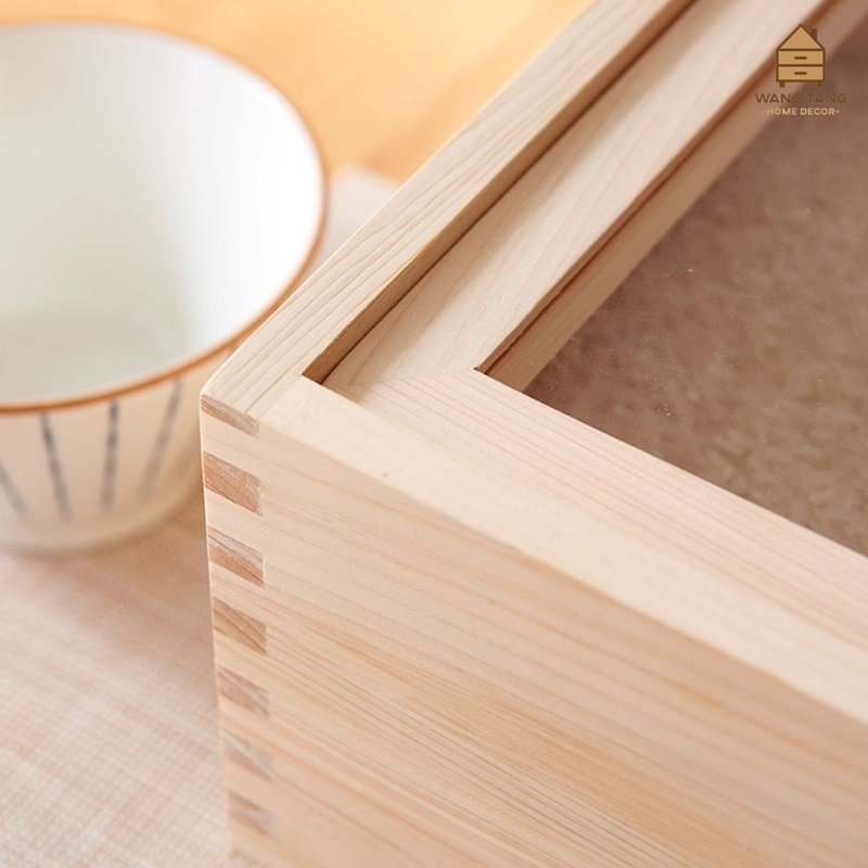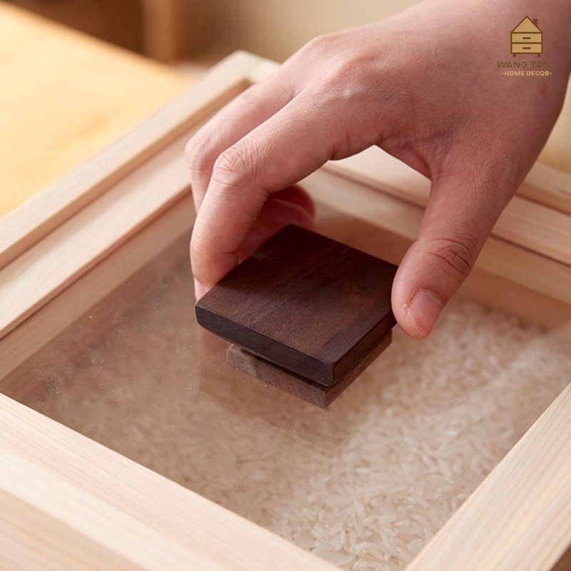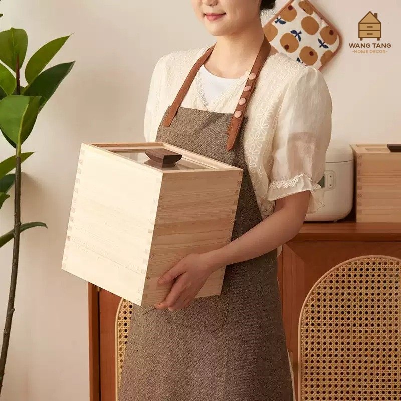 ถังเก็บข้าวสารไม้สนฮิโนกิ สไตล์มินิมอลญี่ปุ่น สำหรับใช้ในบ้าน ระบบปิดผนึกกันความชื้นและแมลง พร้อมถ้วยตวงไม้ ภาชนะเก็บข้าวสารอย่างดี รุ่น Teruko